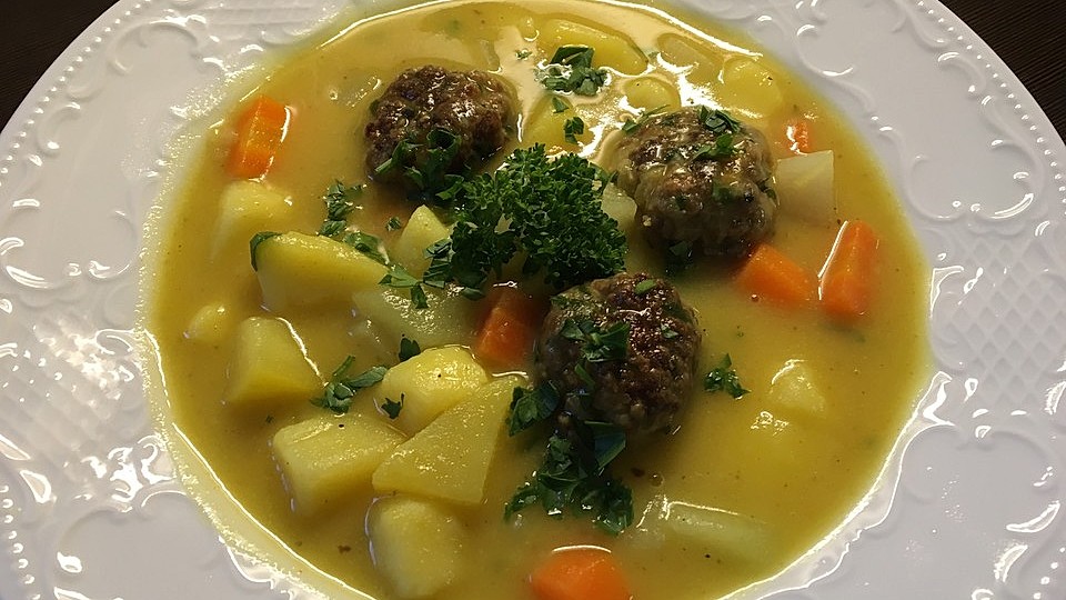 Die besten Suppe mit Hackbällchen und Kartoffel Rezepte Suppe mit Hackbällchen und Kartoffel Rezepte und viele weitere beliebte Kochrezepte finden Sie bei. MöhrenEintopf mit Fleischbällchen Mit leckeren Fleischbällchen und frischen Kartoffeln und Möhren Besonders lecker durch die sorgfältige Auswahl bester Zutaten schmeckt der Erasco MöhrenEintopf. Die besten Möhrensuppe mit Hackbällchen Rezepte Möhrensuppe mit Hackbällchen Rezepte und viele weitere beliebte Kochrezepte finden Sie bei kochbarde.