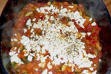 Gemüsebrühe dazu gießen Zucchini zufügen und alles weitere 2–3 Minuten schmoren Tomaten unter die Gemüsepfanne mischen und alles noch etwa 2–3 Minuten durchschmoren Mit Salz, Pfeffer und italienischen Kräutern abschmecken Zum Schluss den Fetakäse mit den Fingern über die Gemüsepfanne bröseln. Die besten Gemüsepfanne mit Feta Rezepte 16 Gemüsepfanne mit Feta Rezepte und viele weitere beliebte Kochrezepte finden Sie bei kochbarde. Finde was du suchst appetitlich & gut Jetzt ausprobieren mit ♥ Chefkochde ♥.