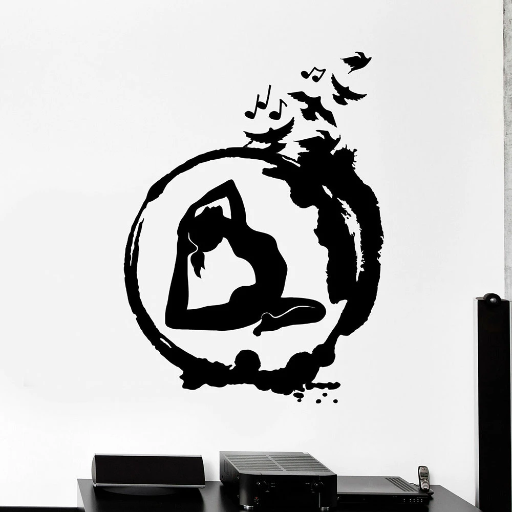 Posture Wall Decal Yoga Zen Circle Birds Meditation Room Interior Decor Vinyl Door Window Stickers Art Removavle Wallpaper E225 Wall Stickers Aliexpress