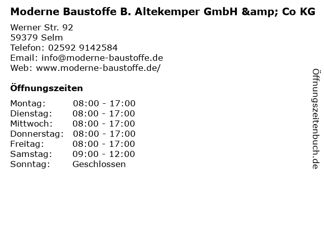 ᐅ Offnungszeiten Moderne Baustoffe D Balster B Altekemper Gmbh Co Kg Selmer Strasse 15 In Ludinghausen