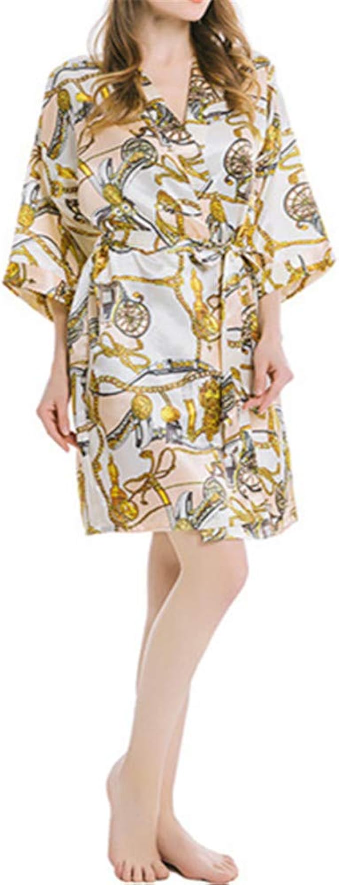 Damen Seide Satin Kimono Kleid Bluten Muster Kimono Bademantel Damen Lange Robe Damen Print Bademantel Apricot S Amazon De Bekleidung