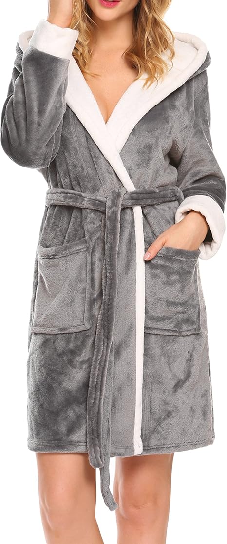 Gut Ekouaer Damen Bademantel Samt Morgenmantel Langarm Saunamantel Mit Kapuze Schlafanzug Mit Knopfen Und 2 Aufgesetzten Taschen Coral Fleece Ooovorota Ru