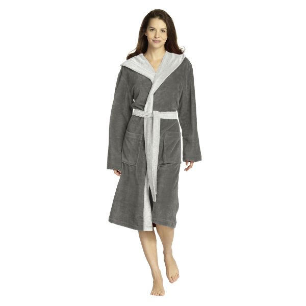 Leverie Modischer Damen Bademantel Morgenmantel Saunamantel Mit Praktischem Reissverschluss Und Gemutlicher Kapuze Dunkelgrau Gr M Modisch Mantel Modestil