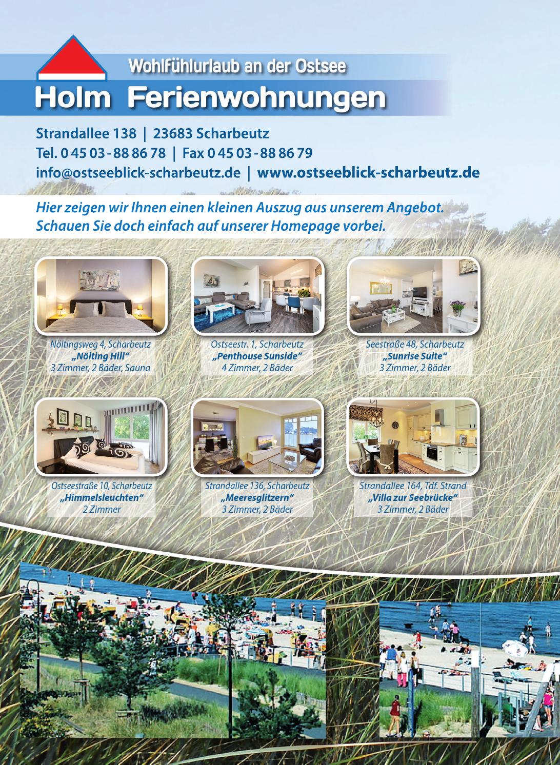 Holm Ferienwohnungen, Scharbeutz 4,137 likes · 21 talking about this · 6 were here wwwostseeblickscharbeutzde. Holm Ferienwohnungen, Scharbeutz Gefällt 4136 Mal · 33 Personen sprechen darüber · 6 waren hier wwwostseeblickscharbeutzde. Deutschland Scharbeutz max2 Personen 25m² Das romantische kleine Cottage auf großem Parkgrundstück mit Ostseeblick bietet auf 25 m2 alles , was man sich für einen erholsamen Aufenthalt in Scharbeutz wünschen kann.