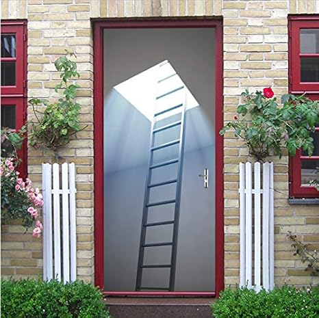 Zoomingmingli Tur Aufkleber Dachfenster Leiter Zimmer Tur Aufkleber Wohnzimmer Schlafzimmer Dekor Tur Dekoration Aufkleber An Der Wand Fabrik Amazon De Kuche Haushalt
