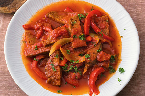 Veganes Paprikagulasch Mit Seitan Nudeln Zucker Jagdwurst
