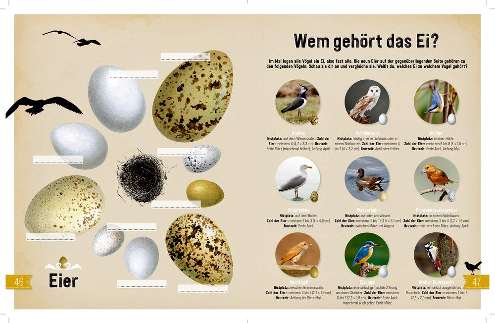 Bohem Press (Verlag) (ISBN) Vor allem geht es um Vögel, die in unserer Region leben und die Kinder selbst im Garten entdecken können Es wird spannend und spielerisch erzählt und mit Leichtigkeit Wissen vermittelt Interessante Exoten und allgemeine Hintergründe zu Vögeln gibt es in zahlreichen farbenfrohen. Natur Entdecken · Verstehen · Mitmachen Ab 3 Jahren / 72 S / 22,2 x 28,4 cm / vollfarbig Steifbroschur mit Prägung und offener Fadenheftung ISBN. Vom Ei bis zum Gefieder können kleine und große Künstler ausprobieren, ihre eigenen Vogelwelten zu kreieren.