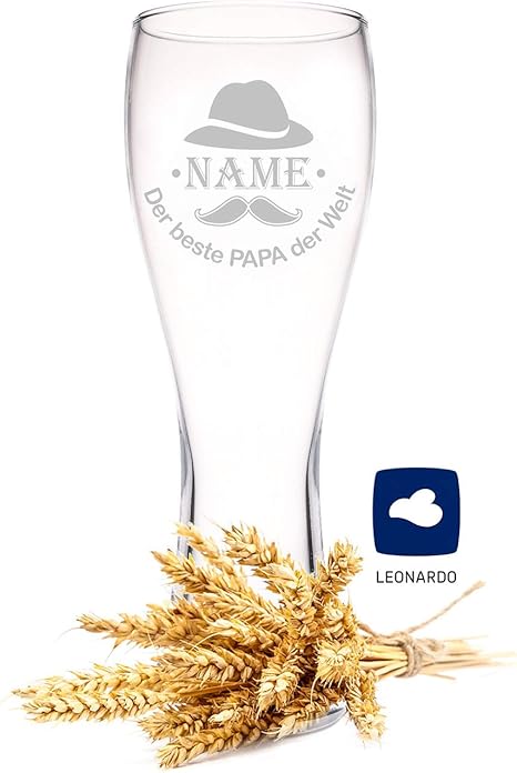 Amazon De Leonardo Weizenglas Mit Gravur Der Beste Papa Der Welt Personalisiert Mit Namen Geschenk Fur Papa Ideal Als Vatertagsgeschenk 0 5l Bierglas Weizenbierglas Als Geburtstagsgeschenk Fur Manner