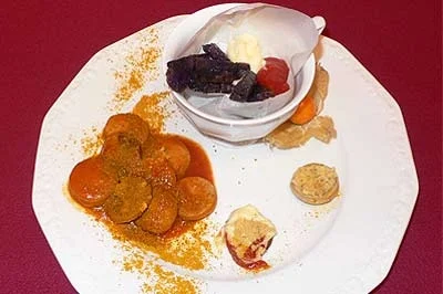 Sansibar Wine Mallorca Restaurant Speisen Food Currywurst 10x10 Top Food Feinkost