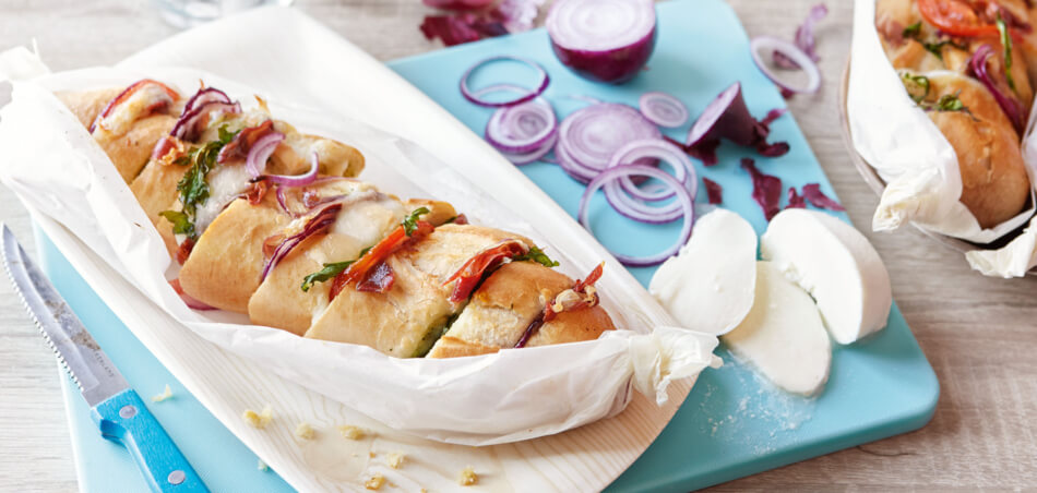 Gefulltes Ofenbaguette Mit Hahnchenbrust Und Mozzarella Fingerfood Desserts Rezepte Fingerfood