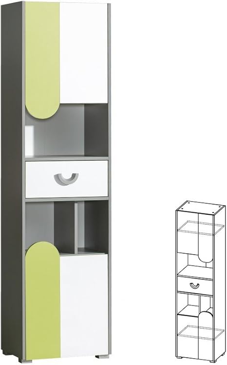 Schrank Hochschrank Regal Mit Turen Futuro Kinderzimmer Mobel Farbauswahl Weiss Graphite Grun Amazon De Kuche Haushalt