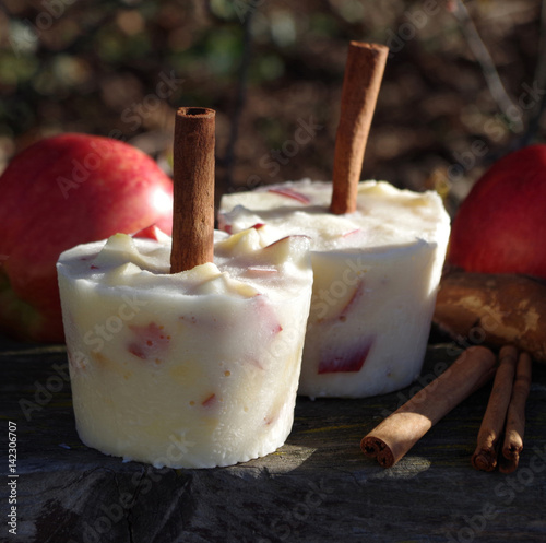Foto Apfel Milchreis Eis Mit Zimt Aussenaufnahme Bild