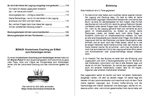 Die ursprünglichen Legesysteme bestehen aus der eskarte, der 3er Legung, 5er Legung, 9er Legung und der grossen Tafel Dies sind Originalformen und es lohnt sich mit diesen Varianten anzufangen um den Zugang zum Lenormand zu finden. Die 9er Legung des Lenormand wird hier für Dich erklärt und gedeutet wartet hier Es ist eine ganz besondere Ausdeutung mit völlig neue und sehr einprägsamen Bildern!. Das kleine Blatt wird auch die 9er Legung genannt Falls eine Personenkarte auf dem Tisch liegt, orientieren wir uns an dieser und beginnen von dort aus unsere Deutungen Es gibt keine Regeln, folge deiner Intuition Falls keine Personenkarte auf dem Tisch liegt, empfehle ich, sich von oben links nach unten rechts vorzuarbeiten Wir können nun.