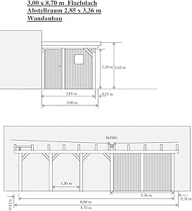 Carport Mv Carport 3 00 X 8 70 M Flachdach Larche Kvh Mit Abstellraum Wandanbau Amazon De Garten
