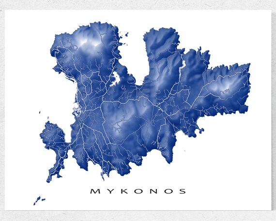 Mykonos Map Print And Mykonos Greek Islands Landscape Art Etsy