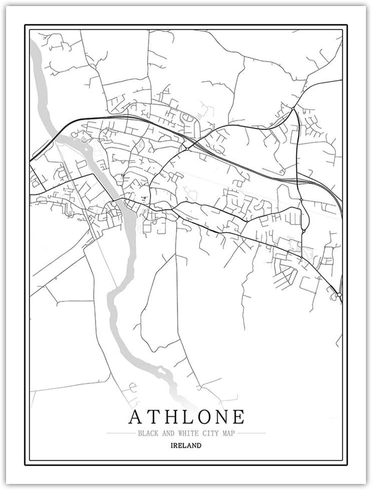 Amazon Com Black And White Map Of The Creative Cities Of Europe Ireland The Capital And Home Decor 30x40cm No Frame Athlone Posters Prints