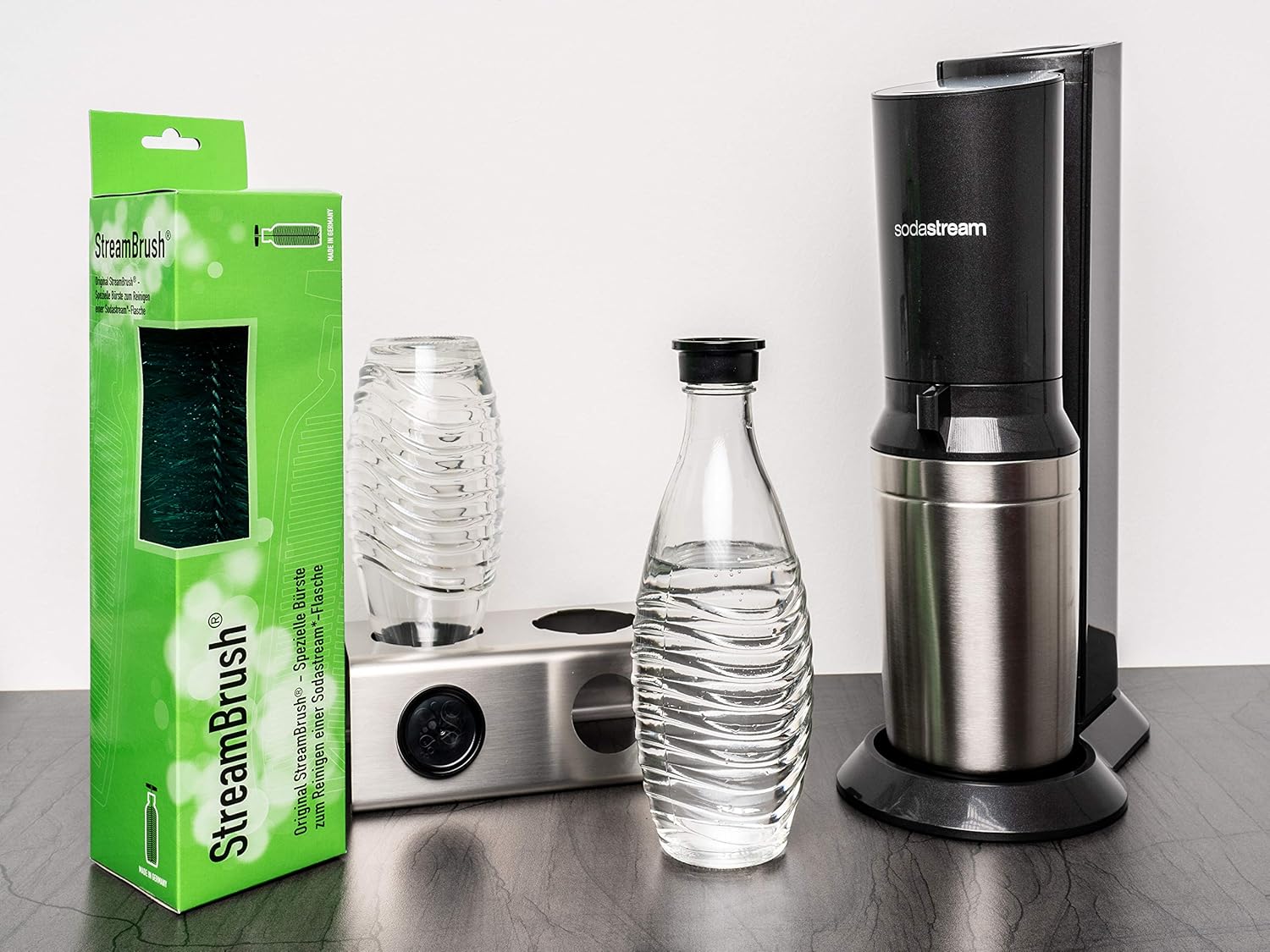 Streambrush Two In One Abtropfhalter Und Spulmaschineneinsatz Aus Edelstahl Kompatibel Mit Sodastream Crystal Emil Flaschen Flaschenhalter Mit Praktischer Deckelhalterung Made In Germany 3x Amazon De Kuche Haushalt