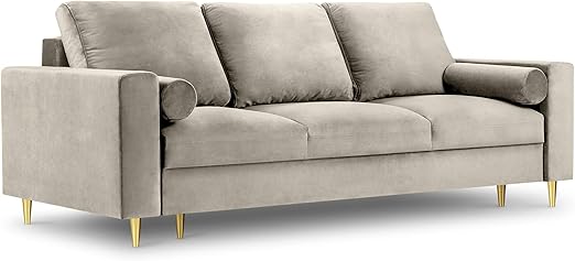Mazzini Sofas Schlafsofa Aus Velours Umklappbar Mit Aufbewahrungsbox Mimosa 3 Sitzer Beige 2 X 100 X 92 Cm Amazon De Kuche Haushalt