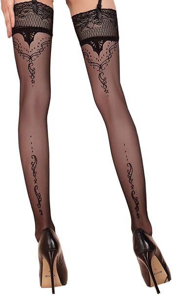 Stay Ups Noir 30 Denier Flower Fur 0 0 Noir Kollektion Hunkemoller
