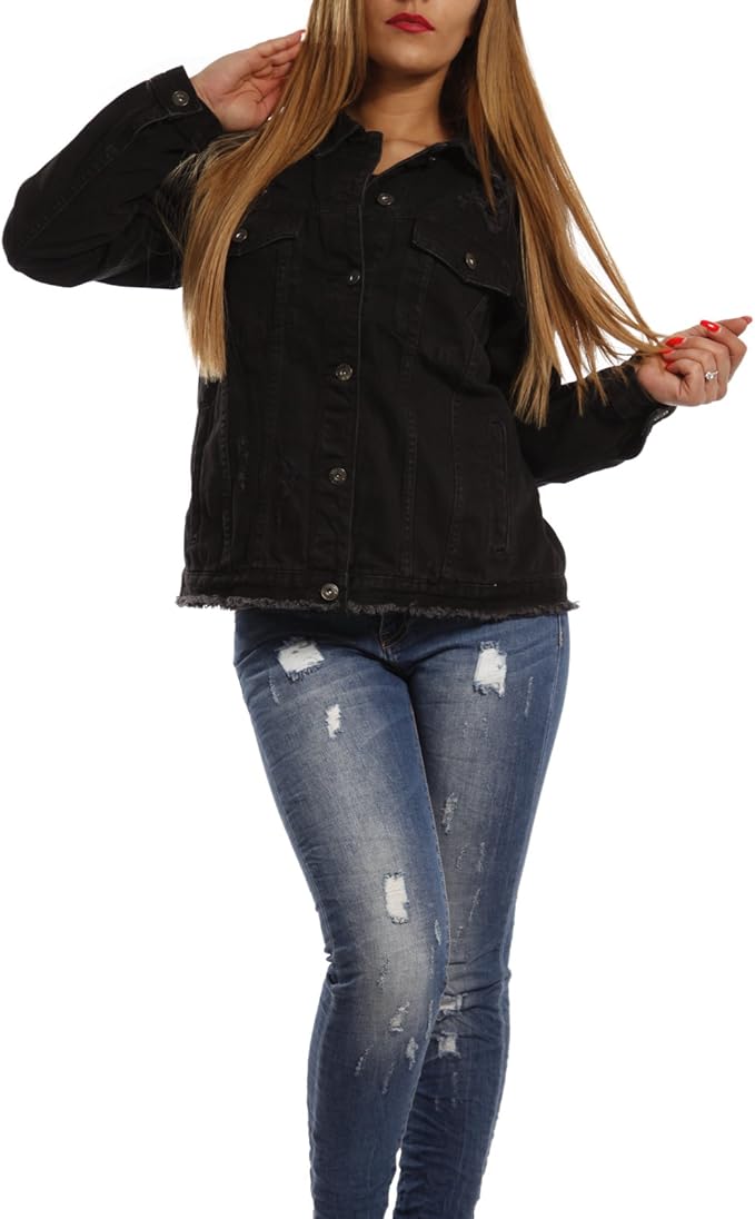Young Fashion Jeansjacke Fur Damen Mit Destroyer Fransen Kurzjacke Mit Figurbetontem Und Modernem Schnitt Farbe Schwarz Grosse S 36 Amazon De Bekleidung