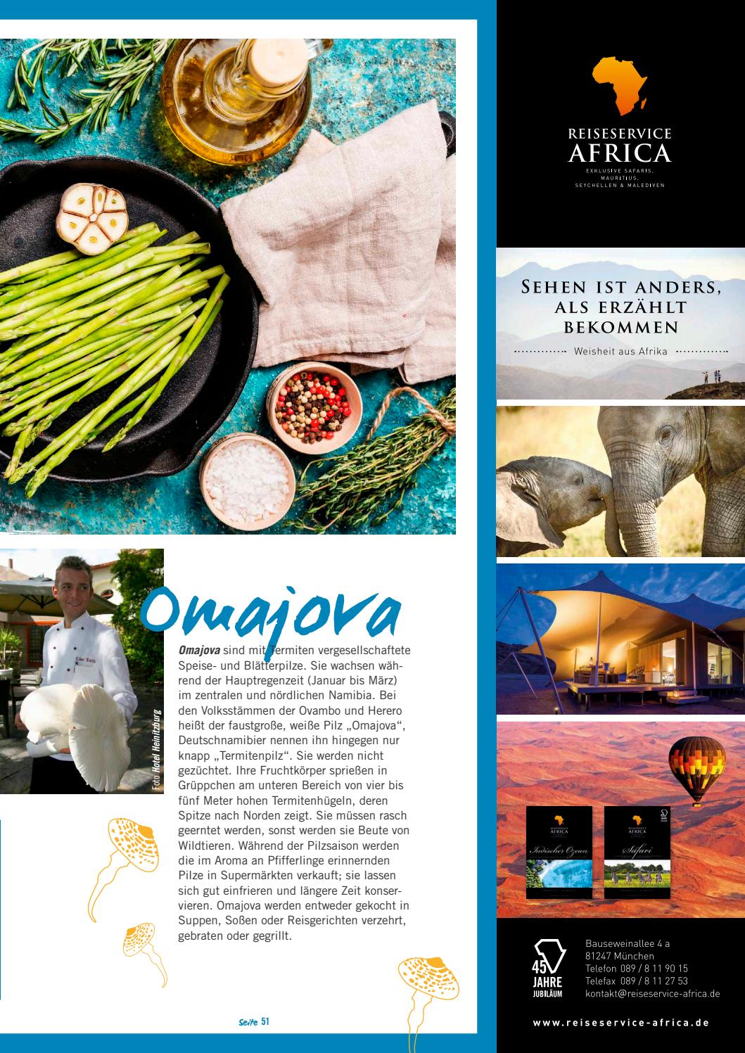 Kontakt@reiseserviceafricade Katalog bestellen Unsere Partner Emirates Air Austral Condor Etihad Airways Qatar Airways Deutsche Lufthansa AG Air Namibia Turkish Airlines Asilia Africa Erongo Wilderness Lodge The Mushara Collection Okonjima Naturally Namibia Reiseservice Africa Bauseweinallee 4A München Fußzeile Block 1.