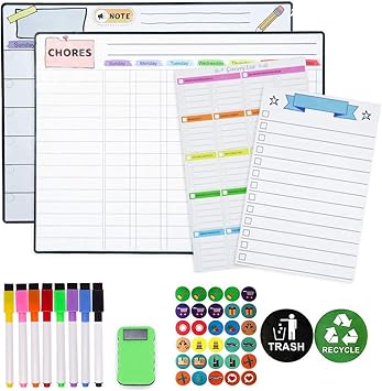 Amazon Com Magnetic Dry Erase Calendar Kit 4 Pack Feela Magnetic Whiteboard Calendar For Refrigerator Includes 2 Large 17 X13 Monthly Chalkboard 1 Grocery List 1 Diy Note For Smart Planners Home Office Office Products