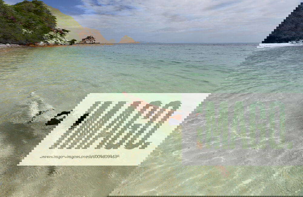 Stockfoto Woman Swimming In Tanote Bay Koh Tao Gulf Tha