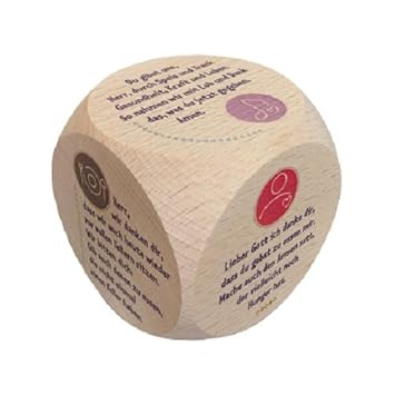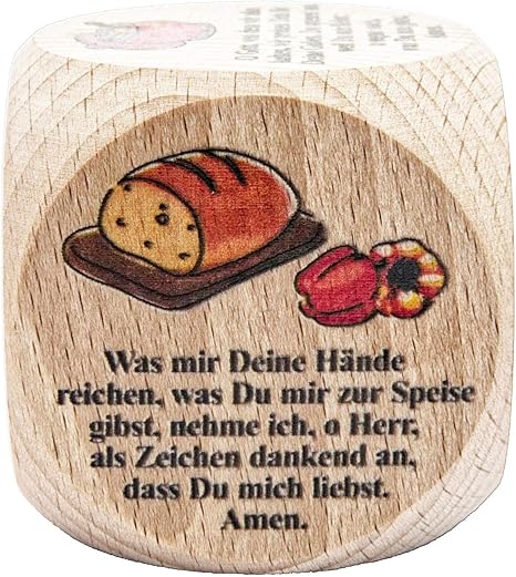 Gebetswürfel Tischgebete mit farbigem Druck für Kinder und Erwachsene aus Holz Taufe Kommunion aus unbehandeltem Buchenholz mit individueller schöner Holzmaserung 60 x 60 x 60 mm, Gewicht ca 150 g. Hier in diesem Abschnitt finden Sie genau genommen allerlei passende Sprüche zur Heiligen Kommunion für Kommunionskarten, eine von Herzen kommende Gratulation und vieles mehrGestalten Sie Ihre Wünsche und Glückwünsche an das liebe Kommunionskind mit ausdrucksstarken Worten und bedienen Sie sich hierfür gerne an unserer Zusammenstellung schöner Sprüche zur Kommunion. Warum dies immer im Umschlag oder einer Schachtel verschenken?.