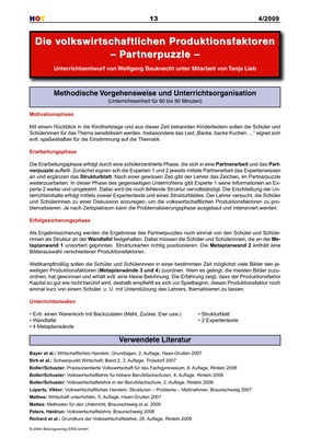 Die Volkswirtschaftlichen Produktionsfaktoren Partnerpuzzle Unterrichtsentwurf Verlage Der Westermann Gruppe