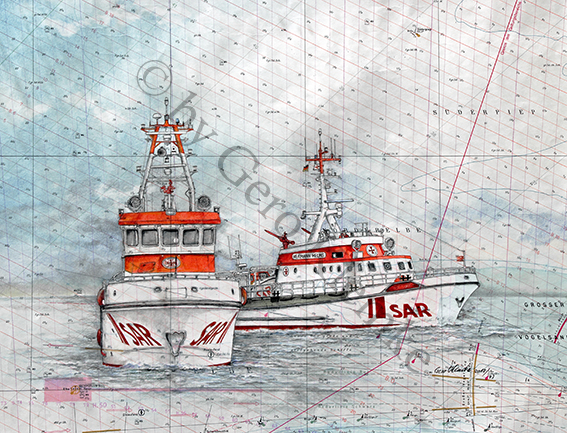 Seenotrettershop Kunstdruck Der Seenotkreuzer Anneliese Kramer Und Hermann Helms