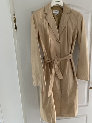 Zara Women Leder Trenchcoat Gr L Eher M Beige Ebay