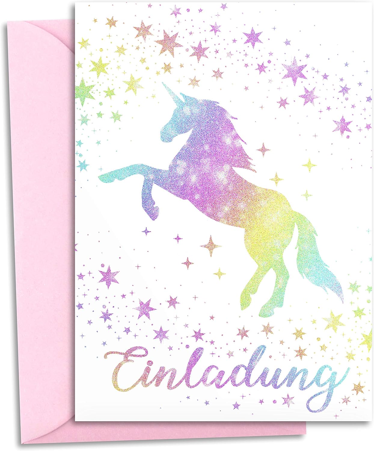 Madchen Jungen Regenbogen Einladung Geburtstag Kinder Pferde Geburtstagseinladung Einladungen Verzaubertes Einhorn 12x Glitzer Einladungskarten Kindergeburtstag Mit Pastell Rosa Umschlagen