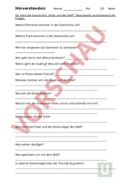 Arbeitsblatt Peter Und Der Wolf Deutsch Horverstehen