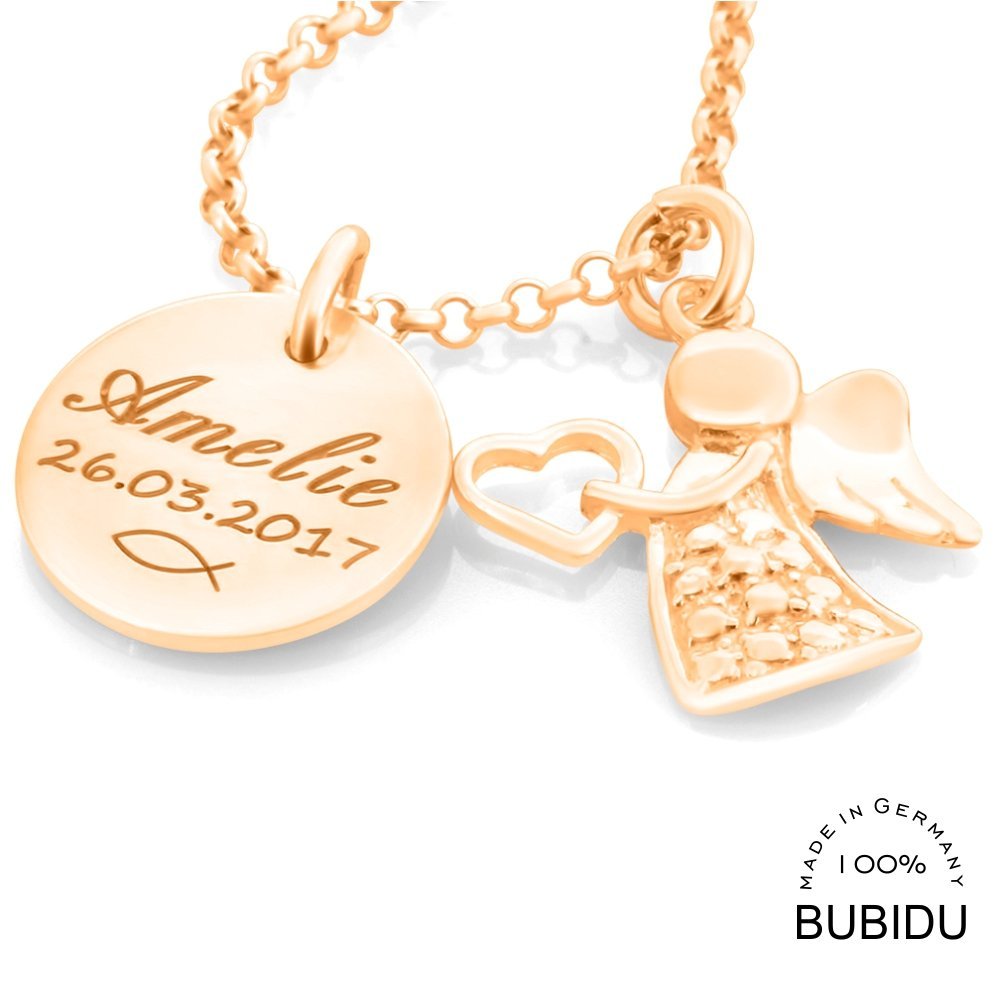 Schmuck aus Edelstahl ist sehr robust, rost– und nickelfrei und hautfreundlich Somit löst er in der Regel keine allergischen Reaktionen aus Außerdem läuft er so gut wie nie an und färbt nicht ab Bestellvorgang 1 Wähle im DropDown Menü deine gewünschten Optionen aus 2 In den Warenkorb legen und zur Kasse gehen 3. Ein Schmuckstück ist ein sehr willkommenes Geschenk zur Geburt Es gibt nur wenige Geschenke zur Geburt, die die Zeit des schnellen Wachstums überdauern Mit persönlichen Silber oder Gold treffen Sie also garantiert die richtige Wahl. Wunderschöne Geburtskette für Babys mit Gravur in Silber in einer bezaubernden persönlichen Geschenkschachtel, ein ganz besonderes individuelles Geschenk zur Geburt für Mädchen und Jungen Eine schöne Geschenkidee, personalisierte Namensketten mit Schutzengel oder Lebensbaum Anhänger, ein süßer Wegbegleiter für Kinder.