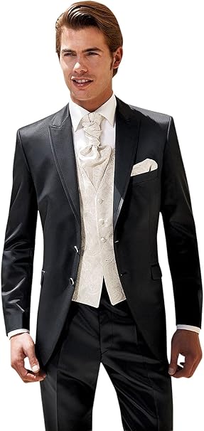 Tpsaade 3pieces Schwarze Manner Anzug Groomsmen Kerbe Revers Brautigam Tuxedos Beste Hochzeit Mann Anzuge Jacke Hosen Krawatte Xl Amazon De Bekleidung