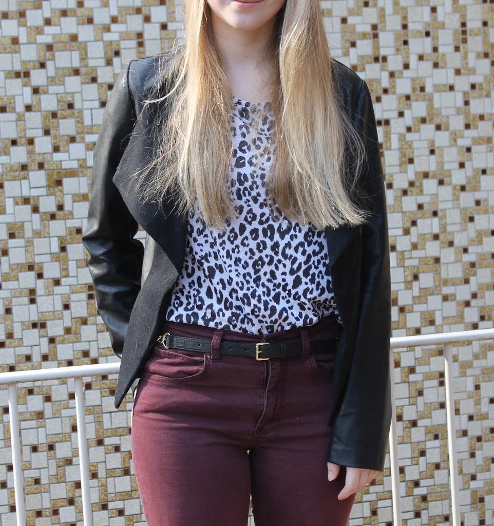 Weinrote Hose Kombiniert Mit Lederblazer Outfit