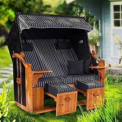 Amazon De Strandkorb Nordsee Blau Weiss Liegemodell Aufgebaut
