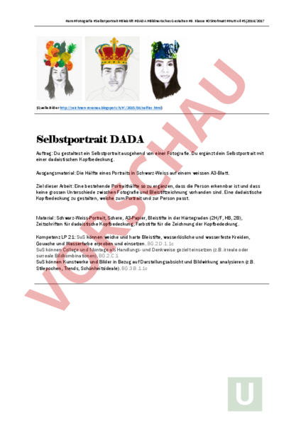 Arbeitsblatt Dada Selbstportrait Bildnerisches Gestalten Collage Montage