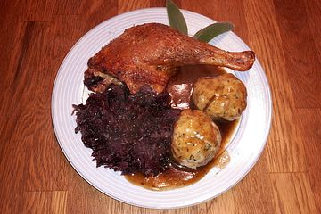 Entenkeulen Und Entenbrust Mit Klossen Und Rotkohl