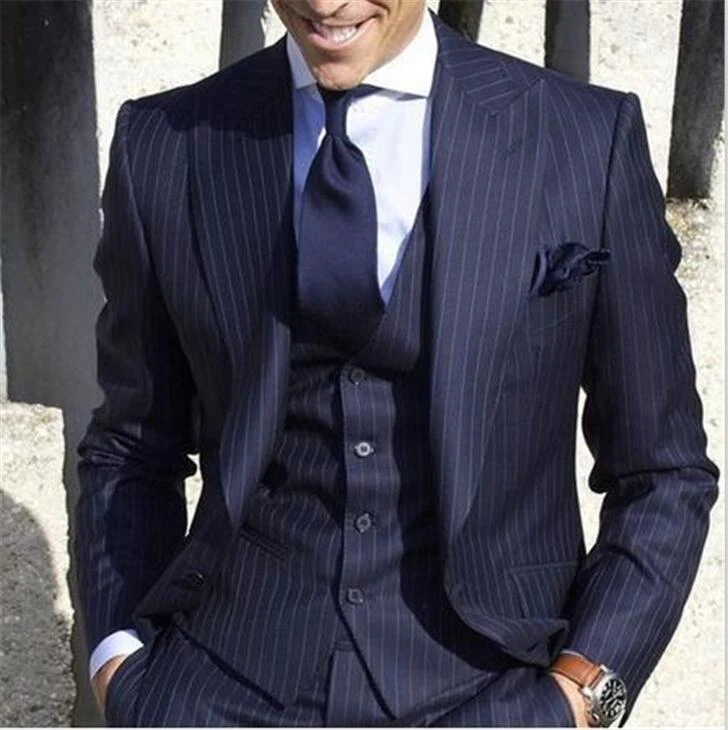 Hubsche Streifen Dunkelblau Manner Anzuge Manner Hochzeit Smoking Fur Manner Brautigam Smoking Herren Anzuge Designs Fur Manner Groomsmen Jacke Hosen Aliexpress