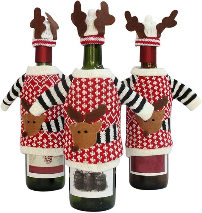 Muybien 3 Er Pack Weihnachten Weinflaschen Abdeckung Rotwein Geschenkverpackung Hirsch Amazon De Bekleidung