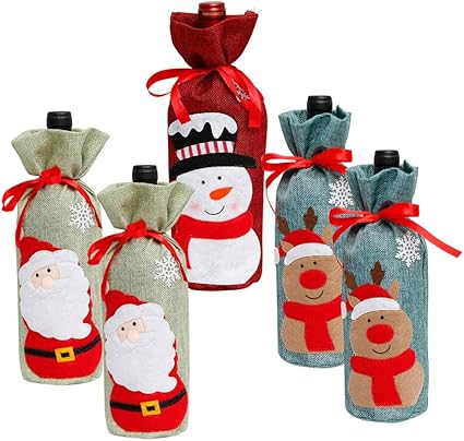 Amazon De Weinbeutel 6 Stuck Weihnachten Weinflaschen Flaschenverpackung Geschenktuten Mit Kordelzug Weihnachts Taschen Geschenk Beutel Geschenkpapier Fur Weihnachtsfeier Festival Dinner Party Tischdekoration