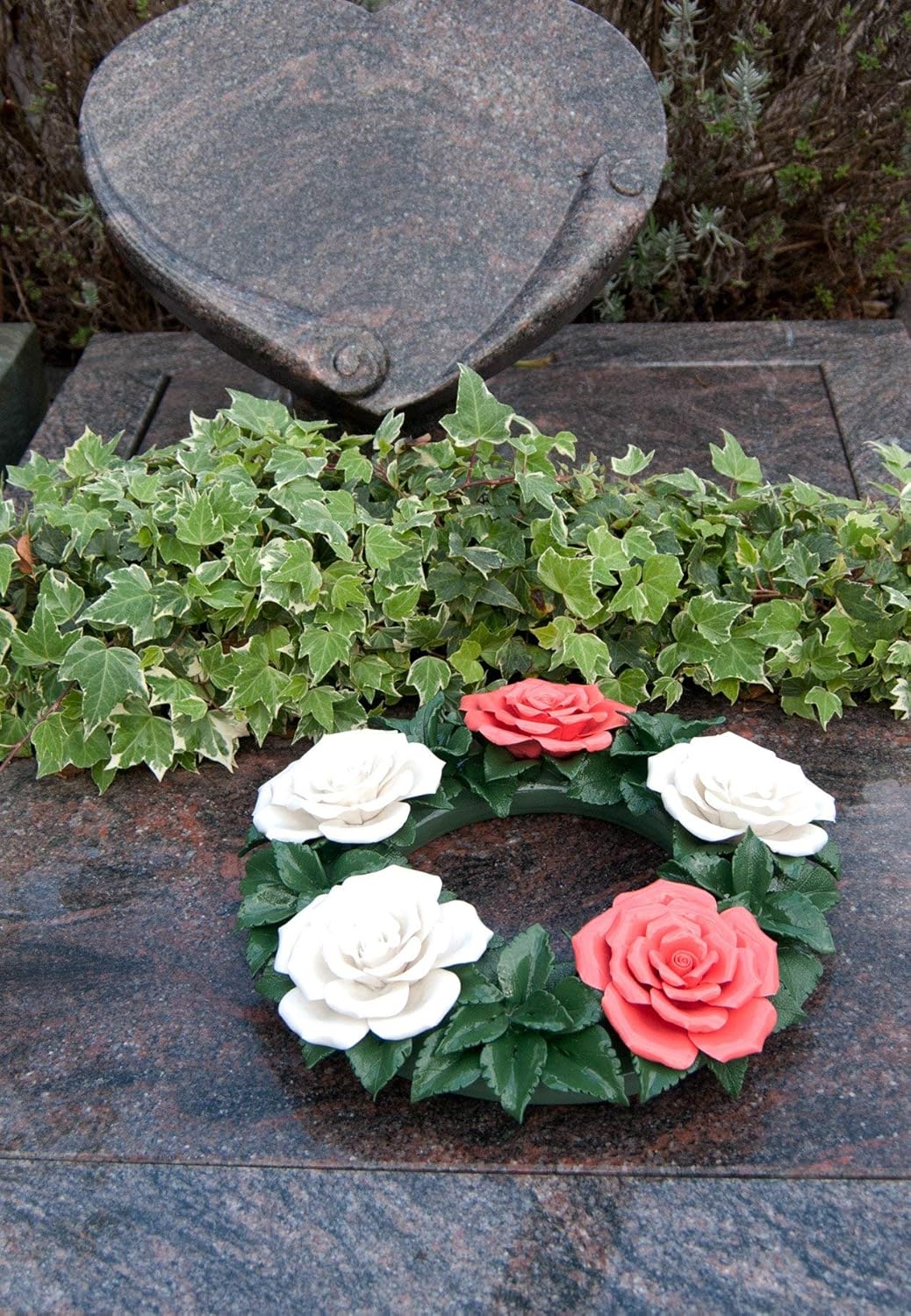 Grabdekoration Blumenkranz Keramik Rot Weiss Hausdeko Gartendeko Beerdigungsblumen Grabschmuck Trauerschmuck Trauerkranz Friedhofsdekoration Wetterfest Amazon De Garten
