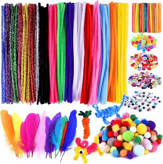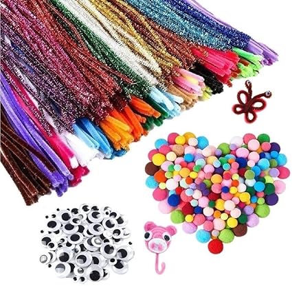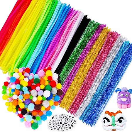 Morefun 600 Stuck Pfeifenreiniger Chenilledraht Bastelset Fur Kinder Basteln Und Dekorieren 100 Glitzer 100 Faser Pfeifenputzer 250 Pompons 150 Kulleraugen Amazon De Kuche Haushalt