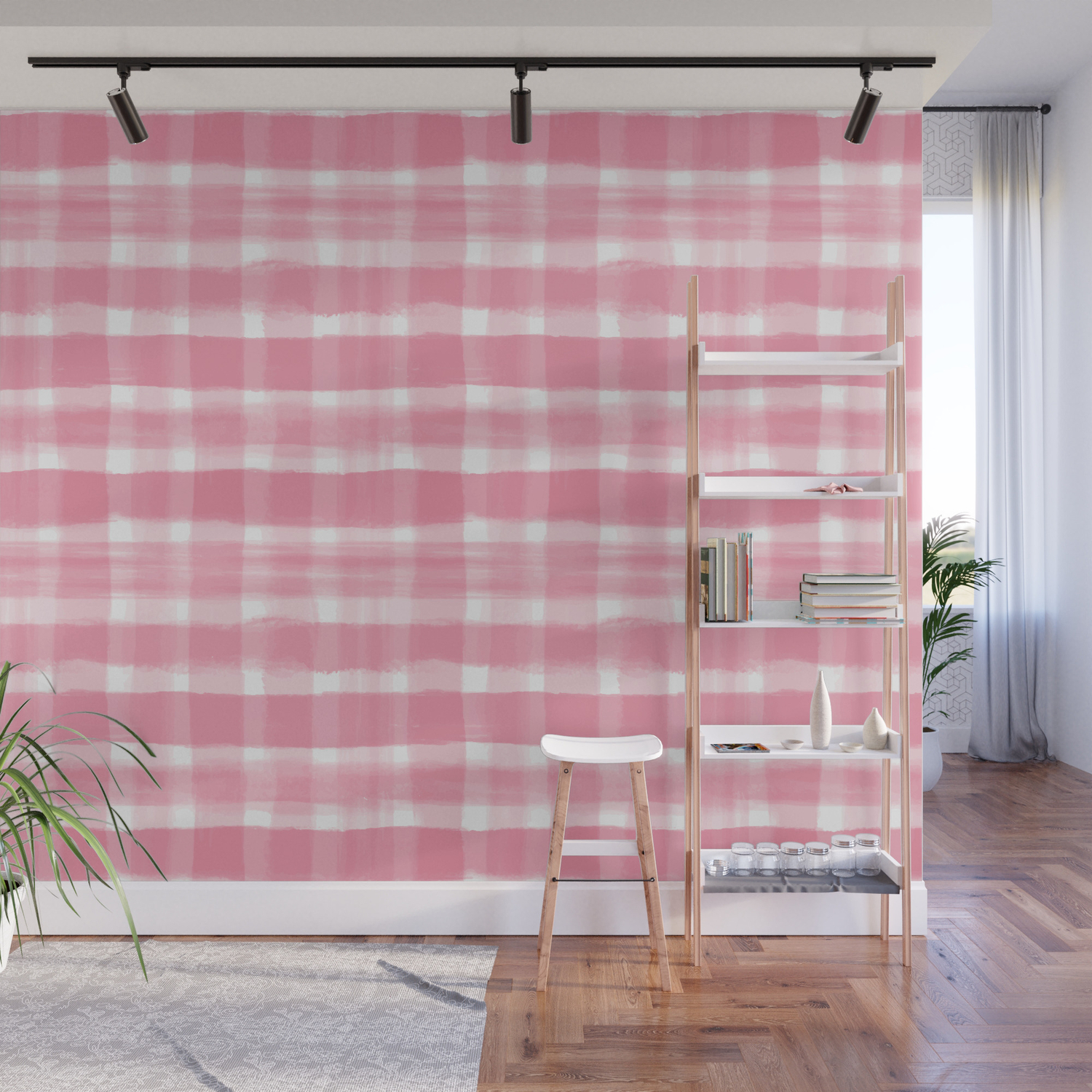 Watercolor Brushstroke Plaid Pattern Pantone Pink Lemonade 16 1735 Wall Mural By Pipafineart Society6
