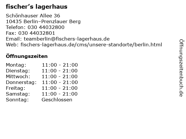 ᐅ Offnungszeiten Fischer S Lagerhaus Schonhauser Allee 36 In Berlin Prenzlauer Berg