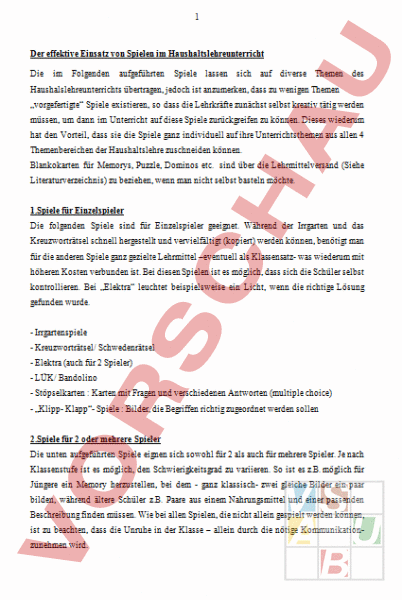 Spiele Zur Unterrichsgestaltung Hauswirtschaft