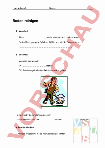 Arbeitsblatt Boden Reinigen Wirtschaft Arbeit Haushalt Anderes Thema