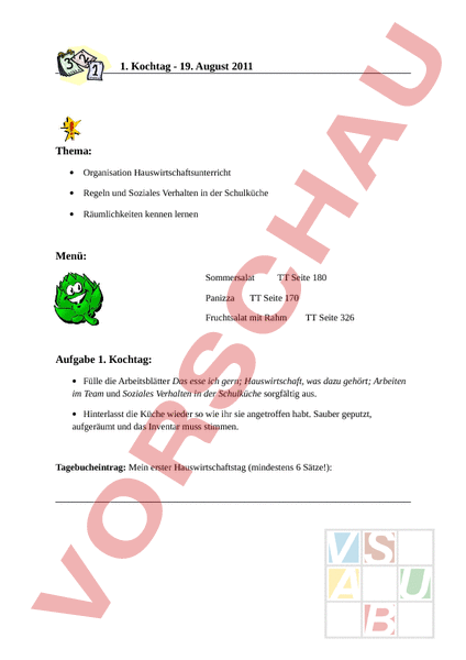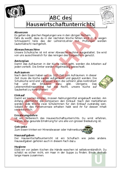 Hauswirtschaftsunterricht Arbeitsblatter