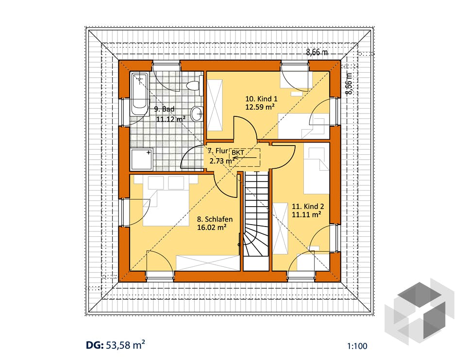 Diesen Stadtvilla Grundriss mit 170 m² und 3 Kinderzimmern schlüsselfertig bauen als KFW 55 Effizienzhaus in Osnabrück, Bünde, Melle, Georgsmarienhütte mit dem Bauunternehmen Schnitker GmbH. Ein Haus Grundriss von der Stange?. Wenn Sie eine kleine Stadtvilla mit Balkon im ländlichen Raum bauen und Ihr Haus etwa 160 m² Grundfläche hat, ist der Preis niedriger als bei einer großen Stadtvilla mit 0 m² im Stadtzentrum Planen Sie mit einer ausreichenden Grundstücksgröße – je nach Modell mindestens 400 m² Fläche.